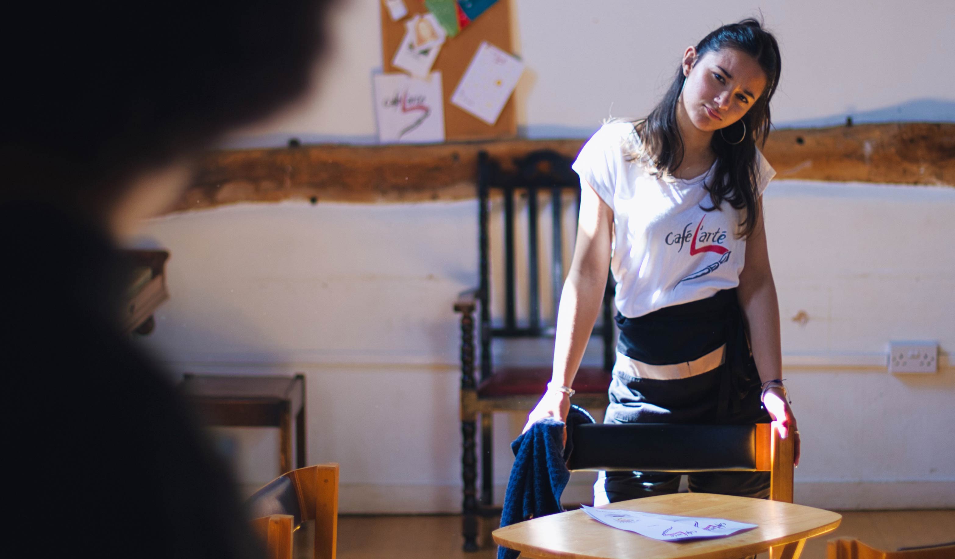 Café L’Arté is a brand new immersive musical set in real time in a real coffee shop. For 5 years Emily has run the shop on her own since losing the love of her life to the Afghanistan conflict. She has had to shelve plans they shared of starting a theatre company. One day a customer walks in and asks if he can add his business card to the notice board. Emily is amused by his job description of ‘Psychic Songwriter’. After initially dismissing such nonsense she finds, in the next hour, that her life has been changed for the better forever.